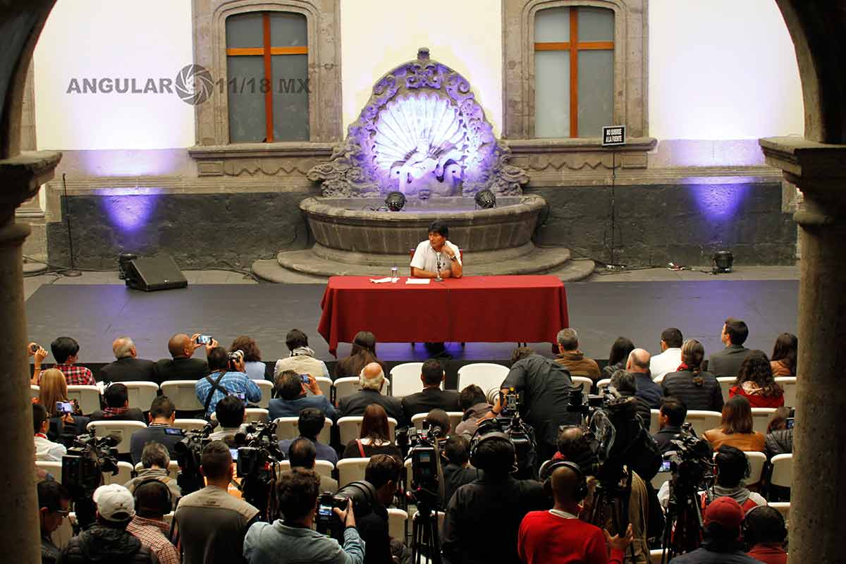 Ciudad de México, 13 de Noviembre de 2019. El ex presidente de Bolivia Evo Morales en conferencia de prensa en la Ciudad de México comentó todos los pormenores que lo obligaron a renunciar como presidente de Bolivia y cómo fue que salió huyendo de su país al realizarse un golpe de estado en su contra.